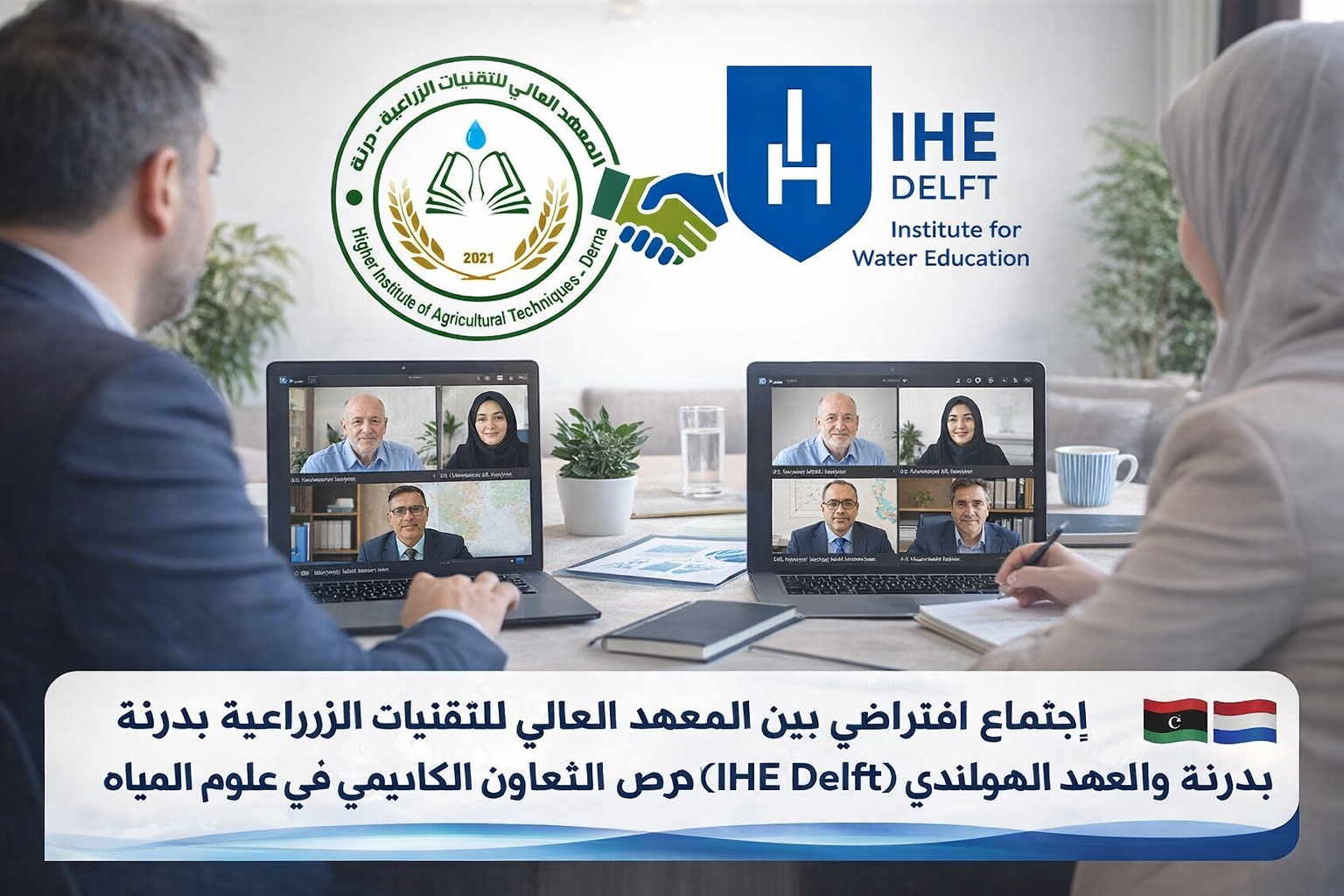 اجتماع افتراضي لتعزيز التعاون الأكاديمي بين المعهد العالي للتقنيات الزراعية درنة و IHE Delft الهولندي