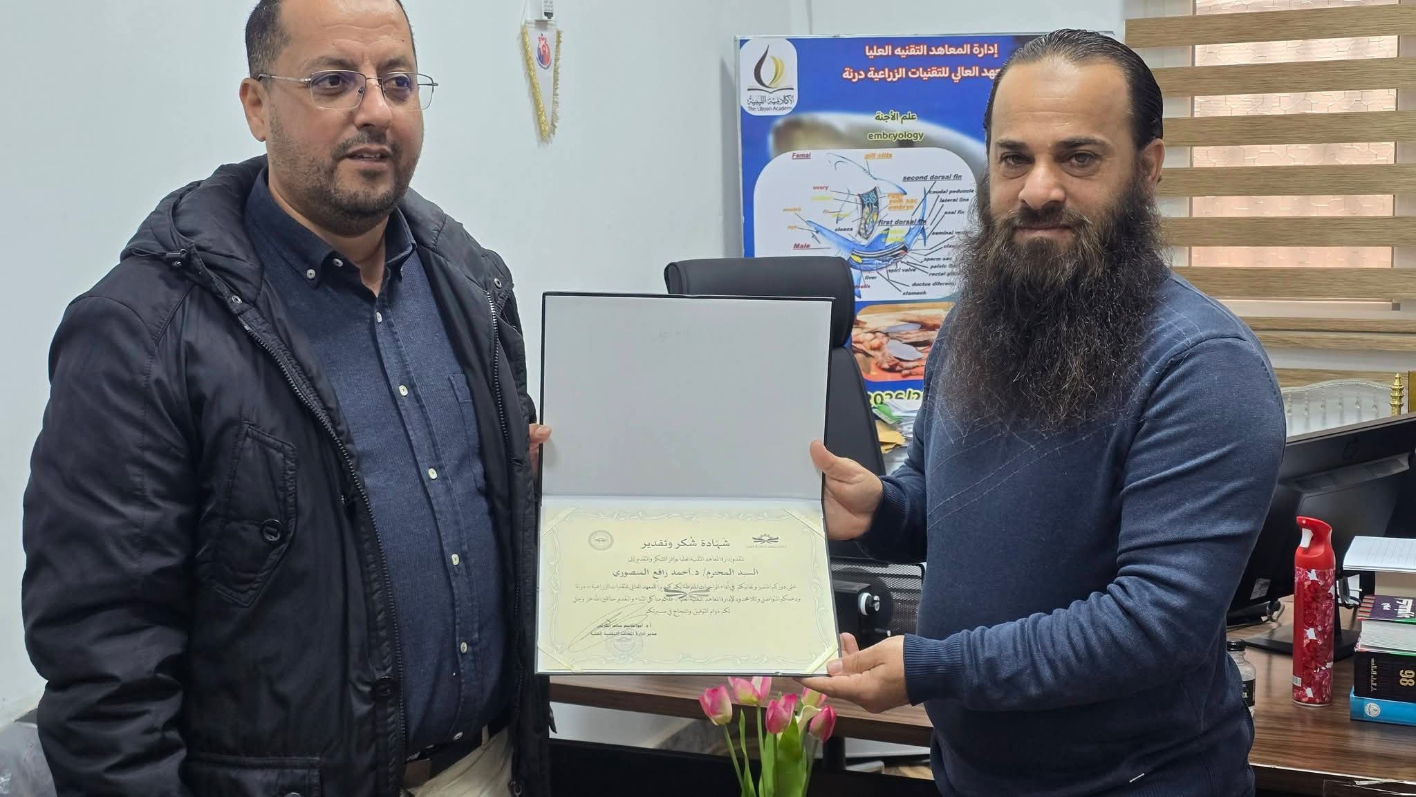تكريم مستحق لقيادة متميزة في المعهد العالي للتقنيات الزراعية – درنة